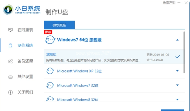 2、選擇需要安裝的操作系統(tǒng),點(diǎn)擊開始制作。