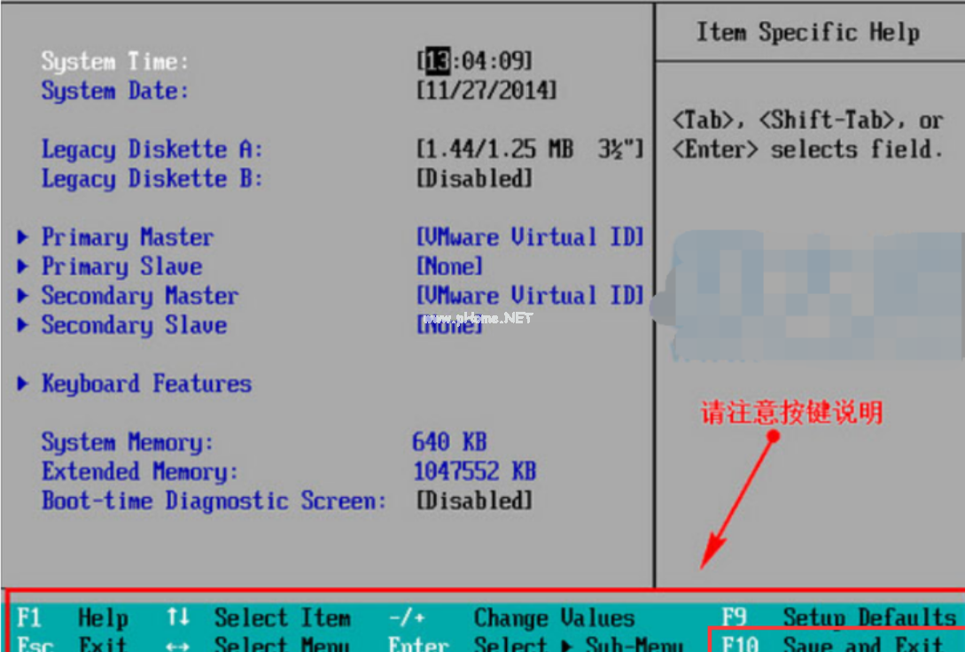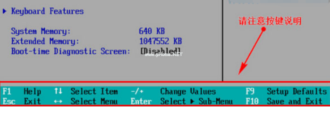 1.進入bios界面設(shè)置,記住底部快捷鍵操作。