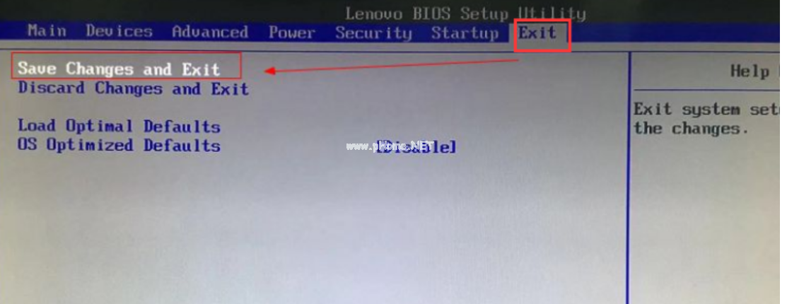 6.切換到exit界面,選擇save changes and exit項,或者按F10進行保存退出。