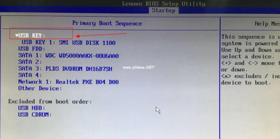 5.將usb key 設(shè)置為第一個,有的電腦可以能是"usb HDD"。