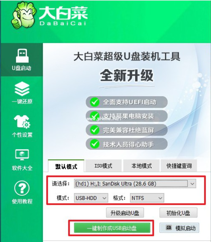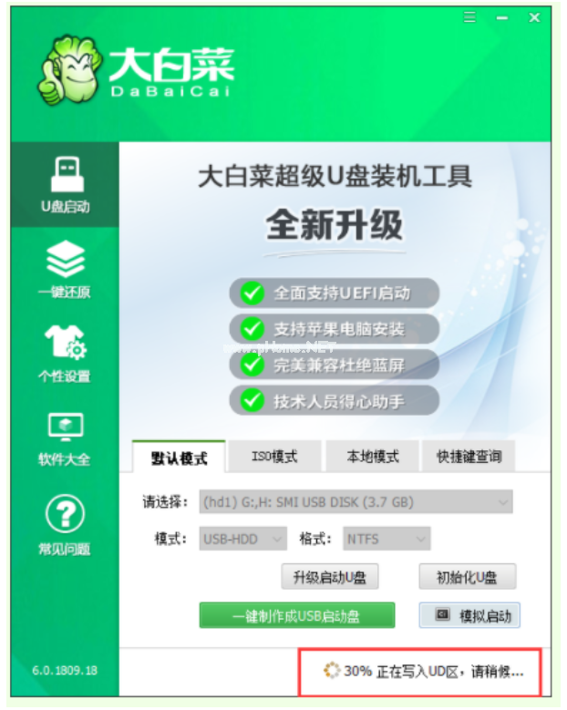 軟件版本:大白菜超級u盤裝機工具 v6.0