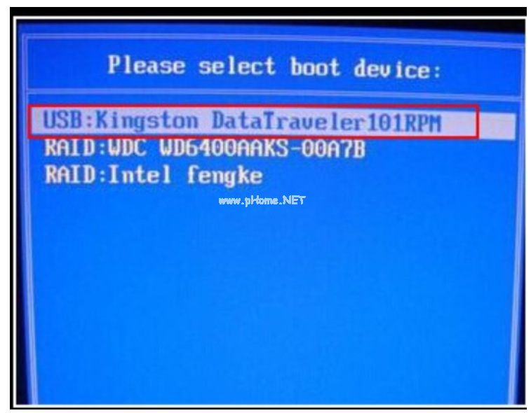 4、將制作好的U盤插入電腦,啟動電腦時按u盤快捷鍵進入設(shè)置界面,選中u盤,回車。