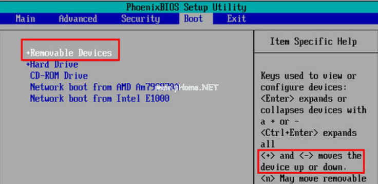 3.將“removeble device”移動(dòng)至最上面,按“+鍵”實(shí)現(xiàn)向上移動(dòng)。