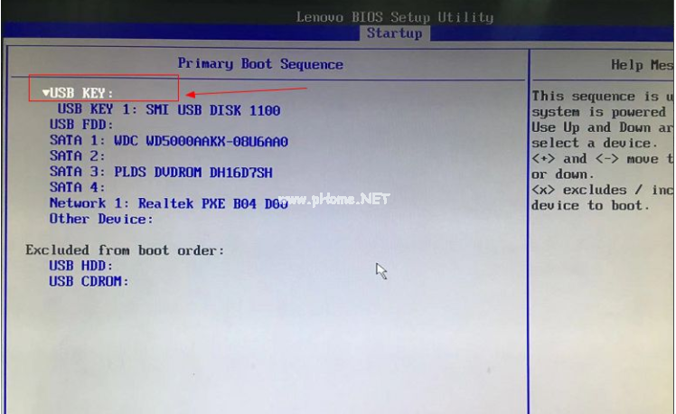 5、將usb key 設(shè)置為第一個(gè),有的電腦可以能是"usb HDD"。
