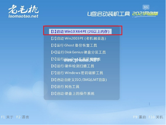 5、將老毛桃u盤啟動盤接入電腦之后,通過快捷鍵設(shè)置u盤啟動,在pe主菜單中選擇【1】進(jìn)入winpe系統(tǒng)桌面。