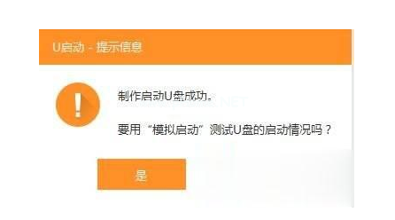 4.u啟動u盤啟動盤制作成功后會彈出提示信息窗口,提示是否要用模擬啟動測試u盤的啟動情況,可根據(jù)自身情況選擇。