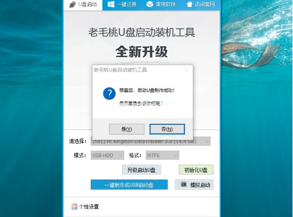 4、 老毛桃u盤啟動盤制作完成后,則會彈出制作完畢的提示,自行決定是否查看教程。