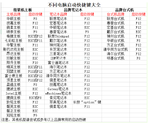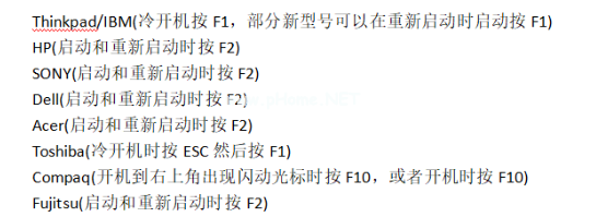 4.下圖是部分機(jī)型的啟動(dòng)熱鍵。