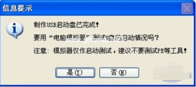 2、點(diǎn)擊一鍵制作,制作完成后點(diǎn)擊是進(jìn)行模擬測(cè)試一下,這就是晨楓u盤啟動(dòng)工具怎么使用的操作方法啦。
