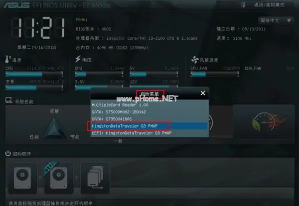 4、插入預先制作好的U盤啟動盤,重啟按ESC選擇識別到U盤啟動項(開啟UEFI模式后,制作的U盤是UEFI開頭的),然后回車從UEFI模式啟動。