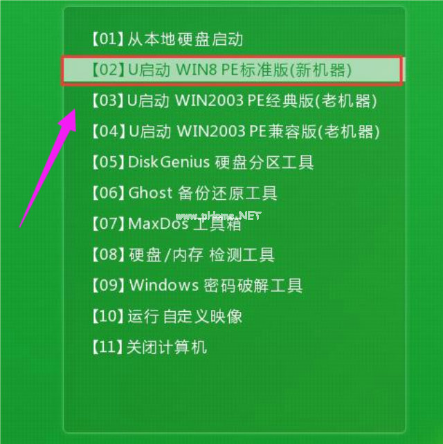 1、把制作好的u啟動盤插在需要分區(qū)的電腦usb接口上,重啟電腦,在出現(xiàn)開機畫面時通過u盤啟動快捷鍵進入u啟動主菜單界面,選擇需要的系統(tǒng),按回車鍵確認選擇。