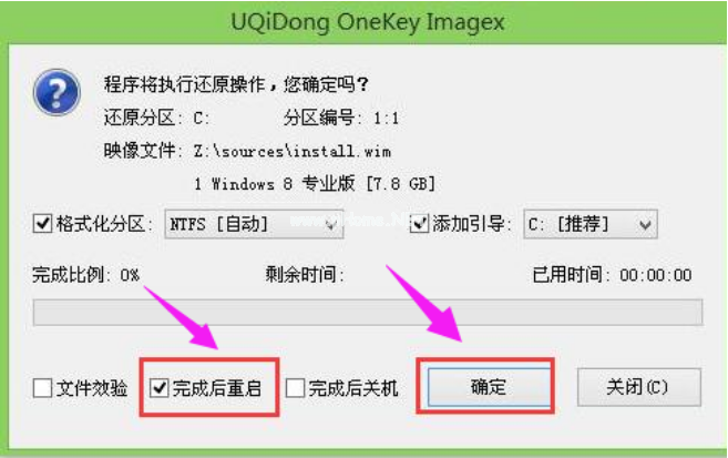 3、當設置完成后勾選完成后重啟,系統(tǒng)在安裝完成后會自動重啟。