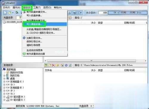 然后再次回到UltraISO窗口,點擊菜單欄中的“啟動”選“寫入硬盤鏡像”