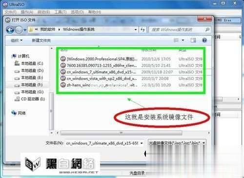 瀏覽到存放鏡像文件的目錄,選中該目標文件,點擊“打開”按鈕