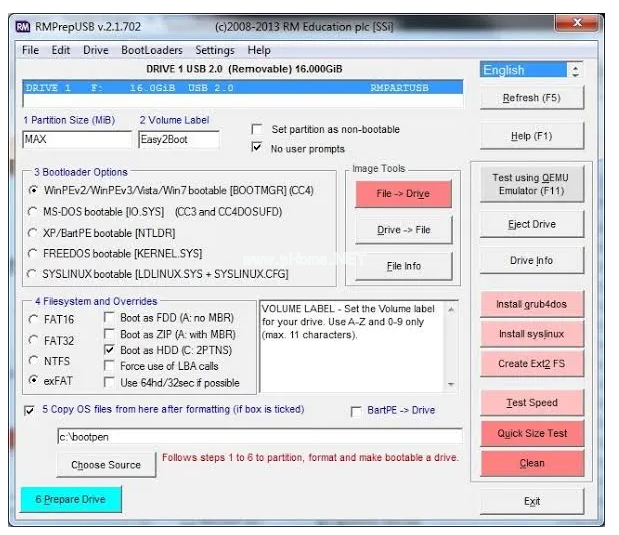 如果您想要一個高度而且可以定制且功能比較豐富的可啟動 USB 創(chuàng)建器,RMPrepUSB 就是您正在尋找的。它允許您創(chuàng)建幾乎任何類型的可啟動媒體。有一個用于測試、分區(qū)、支持多種圖像格式、快速格式化、自定義引導加載程序、文件系統(tǒng)以及 QEMU 仿真器等等。