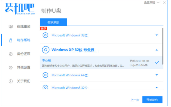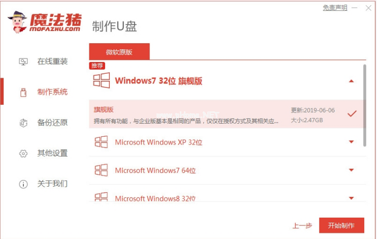 2.選擇需要安裝的系統(tǒng),點(diǎn)擊開始制作。