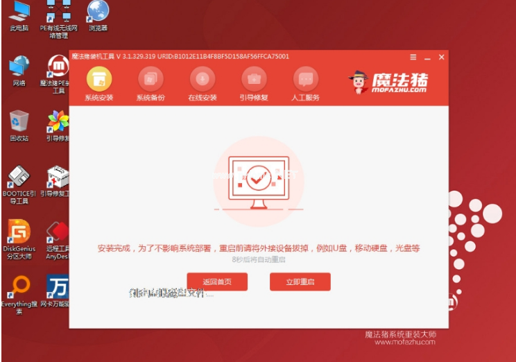 5、系統(tǒng)安裝完成后,點(diǎn)擊立即重啟。