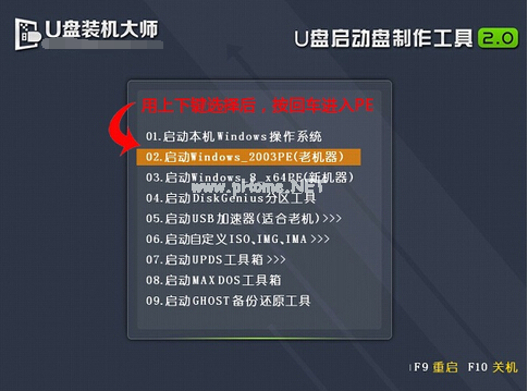 1、u盤啟動大師怎么重裝系統(tǒng)呢?首先把制作好的U盤裝機大師u盤啟動盤插在電腦usb接口上,選擇重啟電腦,在出現(xiàn)開機畫面時用一鍵u盤啟動快捷鍵的方法進入到U盤裝機大師主菜單的界面,選擇【02】運行U盤裝機大師win7pe防藍屏版,按回車鍵確認選擇即可。