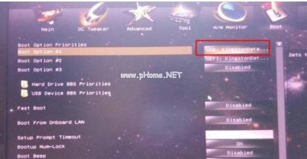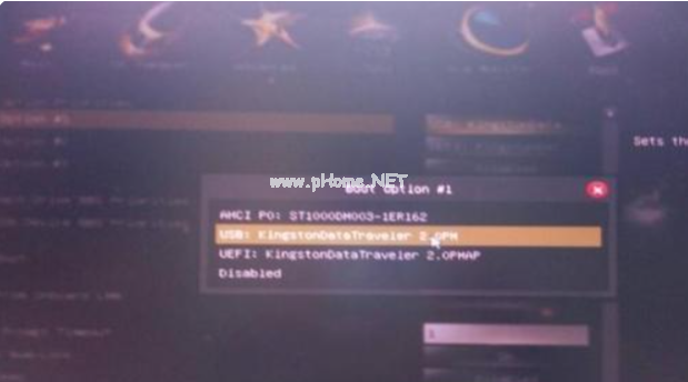 2、選擇【Boot Option #1】按回車鍵,選擇含有USB的U盤回車進(jìn)入。