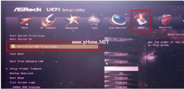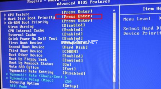 2、按上下方向鍵選擇“Hard Disk Boot Priority”,回車。