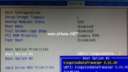 5、接下來選擇Boot Option #1回車,選擇U盤選項,回車即可將u盤設(shè)置為第一啟動,按ESC返回,按F10保存重啟即可。