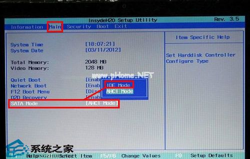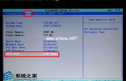 首先進入到BIOS下的Main這一項,找到SATA Mode,然后按Enter進入。