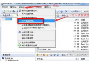3. 第三步成功打開鏡像文件后,根據(jù)下圖箭頭所指,依次點擊【啟動-寫入硬盤映像】選項。