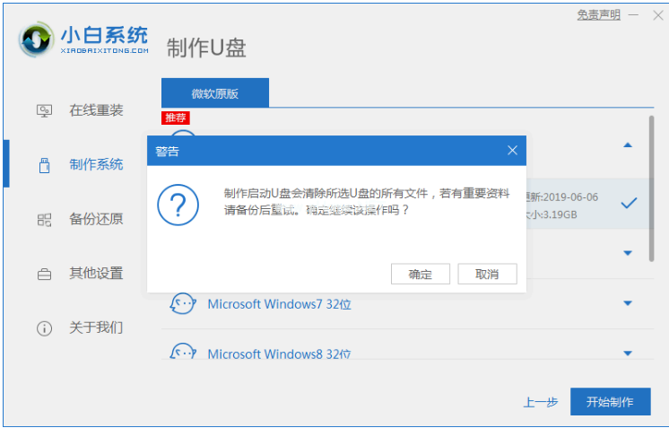 3、這步會(huì)需要格式化u盤,確定備份好u盤重要資料后,選擇確定格式化u盤。
