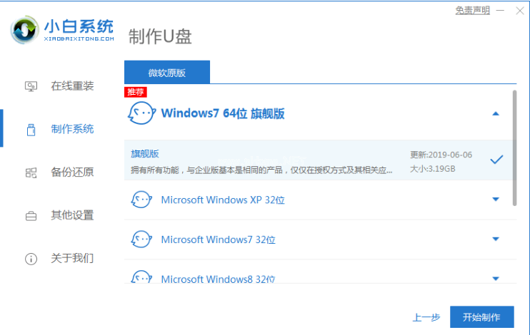2、然后在制作系統(tǒng)中選擇需要安裝的操作系統(tǒng),點(diǎn)擊開始制作選項(xiàng)。