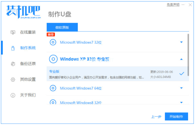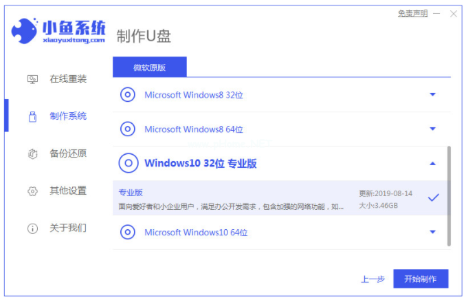 2、選擇自己需要的系統(tǒng),點(diǎn)擊開(kāi)始制作選項(xiàng)。