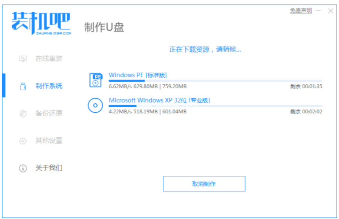 2、然后選擇系統(tǒng),下載安裝資源,耐心等待啟動(dòng)U盤(pán)制作完成即可。