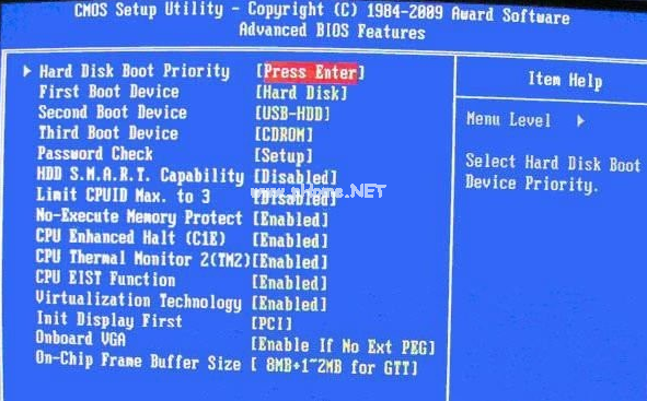 2、在以下界面內(nèi),選擇Hard Disk Boot Priority進(jìn)入到BIOS開(kāi)機(jī)啟動(dòng)項(xiàng)優(yōu)先級(jí)選擇,然后按上下鍵盤(pán)選擇USB-HDD啟動(dòng)項(xiàng)回車(chē)進(jìn)入。如下圖: