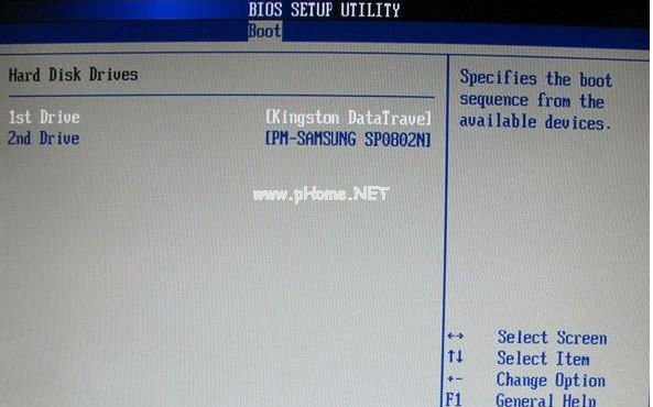 3、在硬盤(pán)驅(qū)動(dòng)器“Hard Disk Drives”界面選擇U盤(pán)為第一啟動(dòng)設(shè)備“1st Drive”。如果之前先在“Hard Disk Drives”里面選擇U盤(pán)為第一啟動(dòng)設(shè)備,那么下圖就會(huì)顯示有U盤(pán),直接選擇即可。