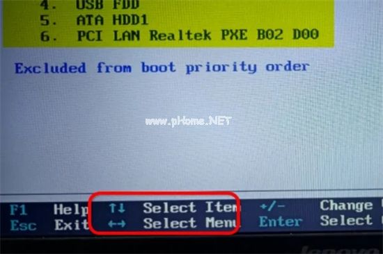 5.設(shè)置BOOT項(xiàng)目接著左左根據(jù)下方提示,用箭頭調(diào)整啟動(dòng)順序。如圖U盤啟動(dòng)是 USBHDD或 USBzip等;