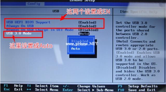 1、首先要確保BIOS設(shè)置中的USB并沒(méi)有被禁用。(這里以聯(lián)想BIOS設(shè)置為例)