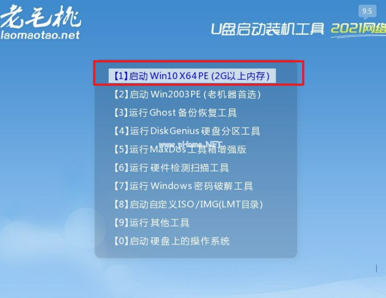 5、然后,進入老毛桃pe主菜單后,我們選擇【1】進入winpe系統(tǒng)桌面,準(zhǔn)備重裝系統(tǒng)。