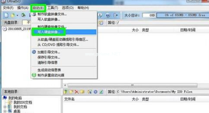 4.然后再次返回UltraISO窗口,單擊& 在菜單欄中。開始選擇& 寫硬盤鏡像。