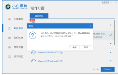 3、彈出提示后確定資料保存好,點(diǎn)擊確定,在點(diǎn)擊開(kāi)始制作。