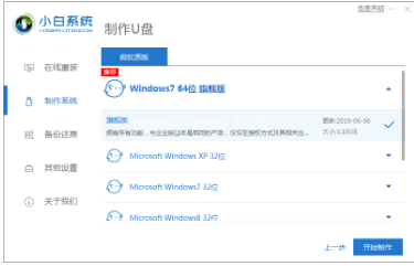 2、選擇win7旗艦版系統(tǒng),點(diǎn)擊開(kāi)始制作。