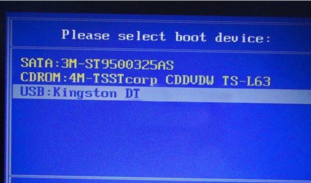 2、在啟動項選擇窗口中,選擇USB驅(qū)動所在的位置,按回車鍵進入,如圖所示: