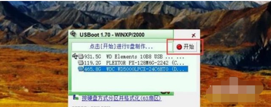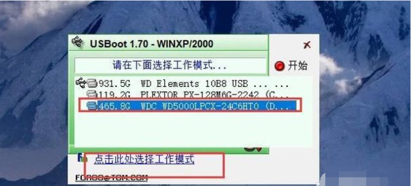 6、模式選擇好之后,點(diǎn)擊“開(kāi)始”選項(xiàng),即可執(zhí)行U盤的引導(dǎo)操作,引導(dǎo)操作完畢之后,即可在Windows系統(tǒng)中格式化U盤設(shè)備,U盤格式化完畢之后即可恢復(fù)使用了。