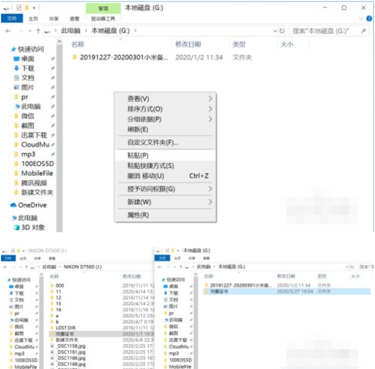 4、再雙擊我的電腦,打開想要存放的盤位置,比如G盤,在文件夾內(nèi)空白處-右鍵-粘貼。文件就開始拷貝過來,等待進(jìn)度條結(jié)束就可以彈出U盤了。