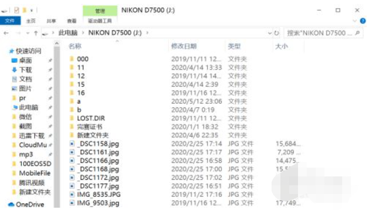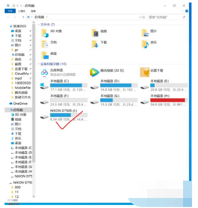 2、進(jìn)入此電腦后可以看到,很多盤符,如圖的C,D,E等等。找到你的u盤,我這里顯示的是NIKON D7500.雙擊左鼠標(biāo)鍵打開。