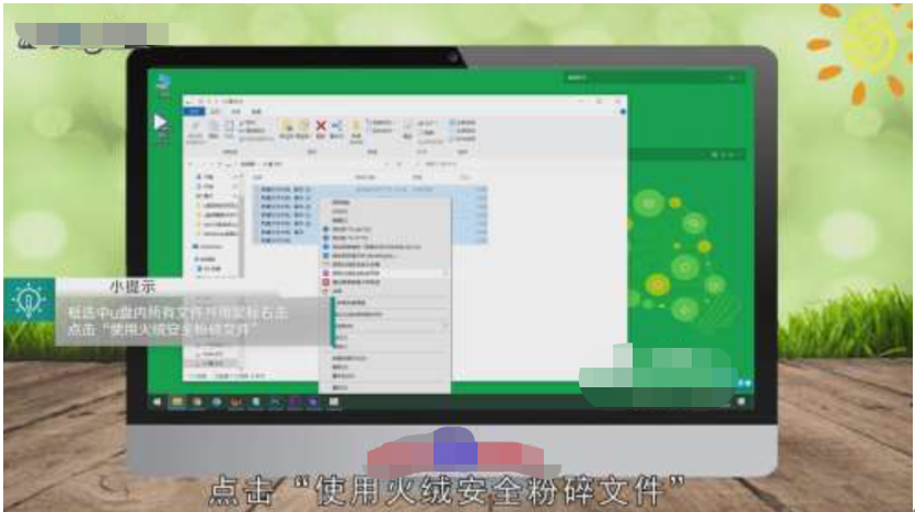 3、選中所有文件并點(diǎn)擊鼠標(biāo)右鍵,在彈出的菜單欄選擇“使用火絨安全粉碎文件”。