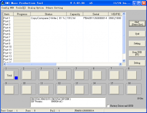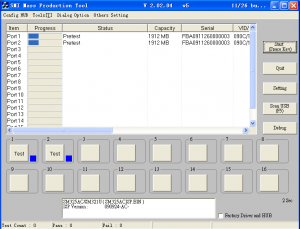 知道自己u盤的芯片信號(hào),那么就到網(wǎng)絡(luò)上找對(duì)應(yīng)的量產(chǎn)工具,這里我已經(jīng)有了適合本u盤使用的量產(chǎn)工具:點(diǎn)擊下載SMI_I1126.7z,工具運(yùn)行后如圖2所示,當(dāng)u盤已經(jīng)插入時(shí)將在對(duì)應(yīng)的地方以顏色表示.