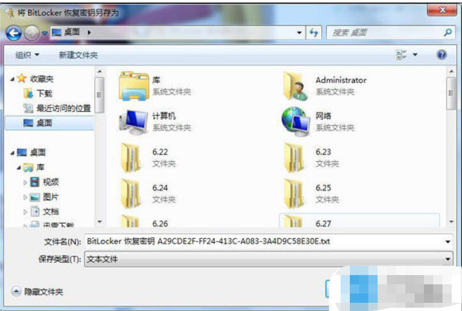 4、然后將BitLocker恢復(fù)密鑰另存為一個(gè)文本,找自己存放的位置即可。