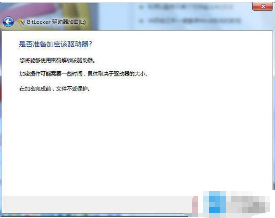 5、彈出提示窗口,點(diǎn)擊啟動(dòng)加密按鈕,如圖: