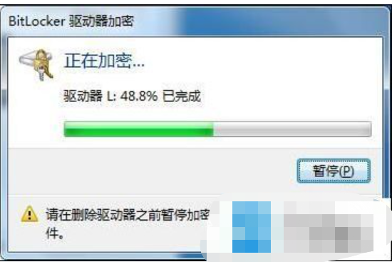 6、靜靜等待u盤加密過程,在此過程中不要拔出u盤也不要關(guān)閉計(jì)算機(jī),等待加密完成,速度稍微有點(diǎn)慢。如圖: