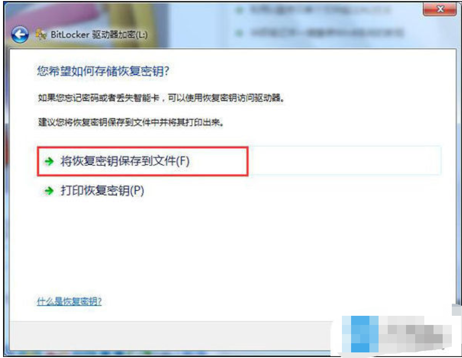3、選擇將恢復(fù)密鑰保存到文件,便能點(diǎn)擊下一步。如圖: