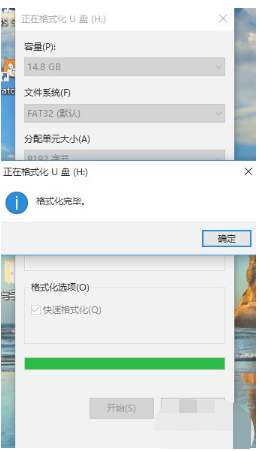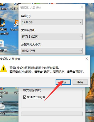 5、然后選擇確定,然后會(huì)進(jìn)入格式化。
